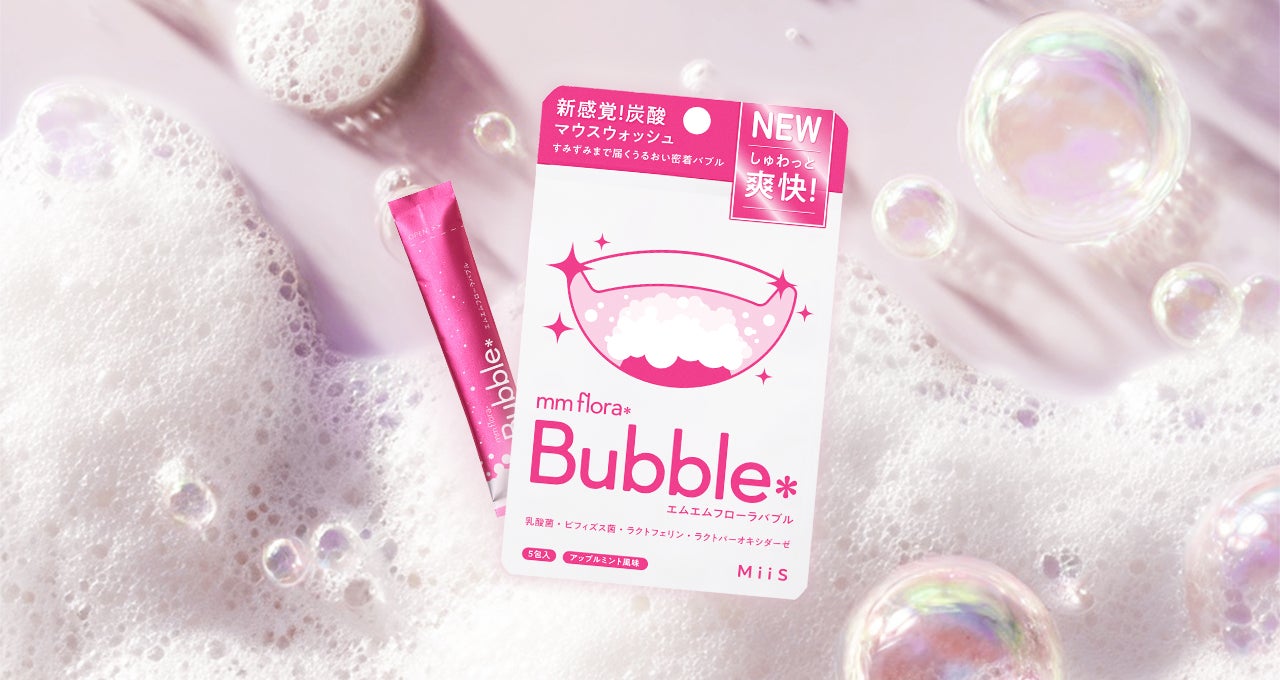 ニッチトップ戦略に基づくブランドプロデュース事業を展開する株式会社MUSCAT GROUP(本社:東京都渋谷区、代表取締役:大久保 遼、証券コード:195A)の連結子会社で、「WinK TO COMMUNITY」をミッションに、心躍るプロダクト・サービスを創出する株式会社WinC(本社:東京都渋谷区、代表取締役:荻原 萌々佳 )が展開するオーラル美容ブランド「MiiS(ミーズ)」は、大ヒットシリーズ「mm flora*(エムエムフローラ)」の新たなラインアップとして、菌活発想の飲み込み型マウスウォッシュ「mm flora*Bubble(エムエムフローラバブル)」を本日発売いたします。
